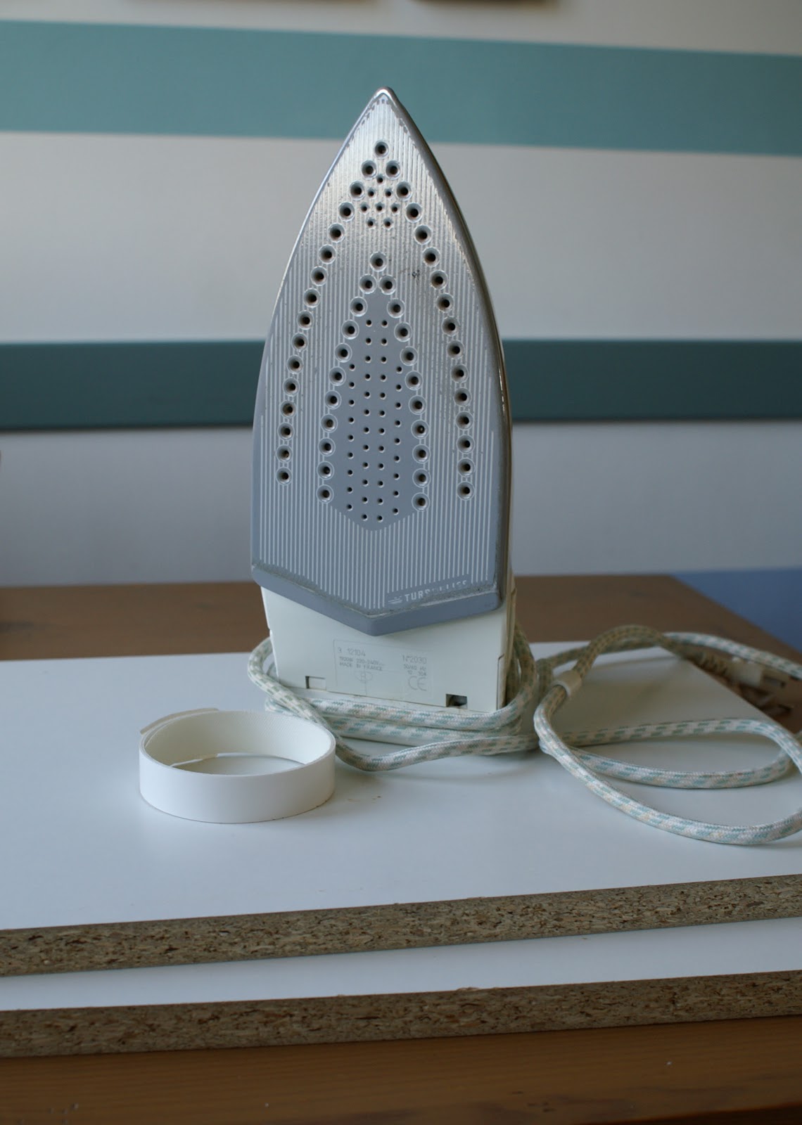 | A polcok oldalára a vasalót legmagasabb fokozatra állítva rávasaltam az élvédő fóliát. A csavarokat is kicseréltem polctartóra. |